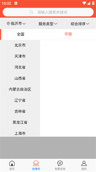 2、可以选择自己的所在区域和服务类型等,还能在搜索框里面进行搜索;