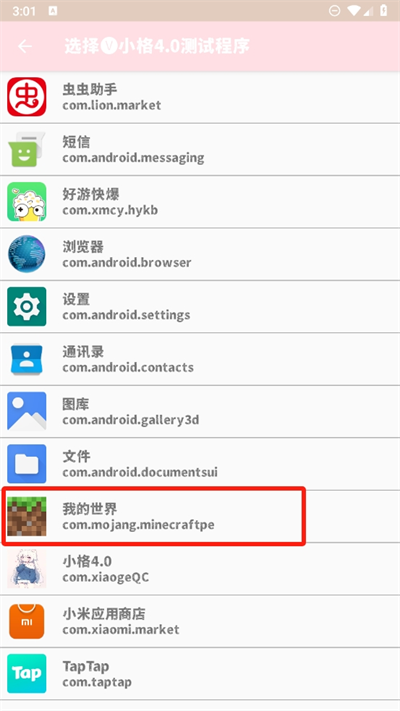 2、进入后可以选择自己想要测试的程序,比如我们以我的世界游戏为例;