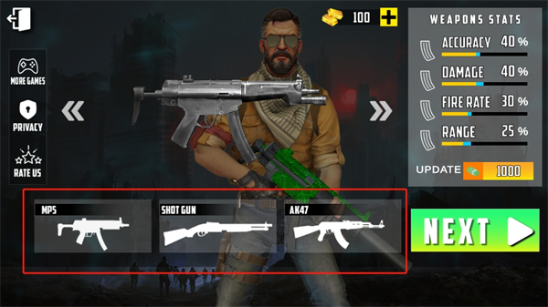 3、进入后可以看到有多个武器可以选择,但是都需要金币进入游戏作战获得金币吧;