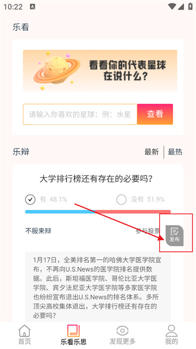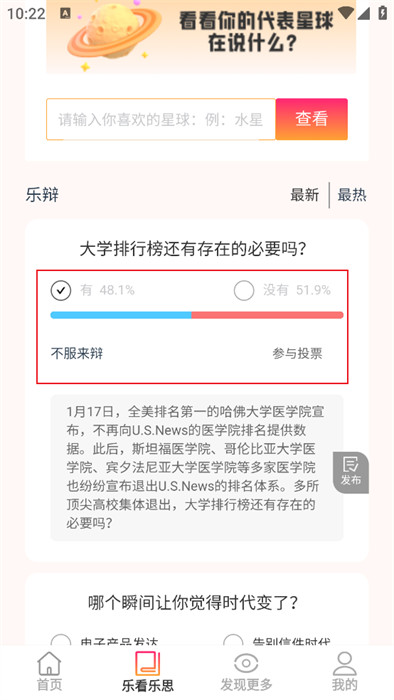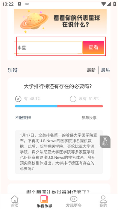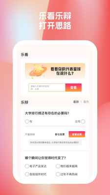 乐看星球app是能看到这里有很多现成的答题内容以及互动的软件,轻松就能从中了解更多的生活细节,这样的方式不仅非常有趣还能学习到很多常识,减少了很多学习当中的枯燥性,不仅如此,目前软件内的设计十分的简单且清晰,即使你是新手也能非常快速的掌握最新的使用技巧,让自己能更加专注的在这里答题,其中还能长期更新一些新的学习板块,致力于给大家带来更有趣的知识,也能一起探索生活的趣味,想尝试的小伙伴快来下载吧!