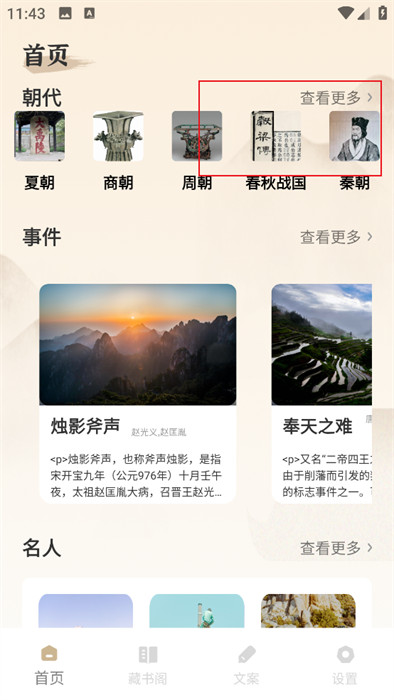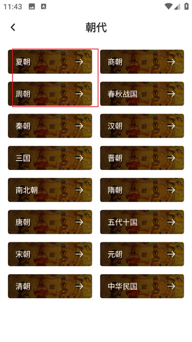 2、随后,你可以在首页上选择想要了解的朝代,如下图所示;