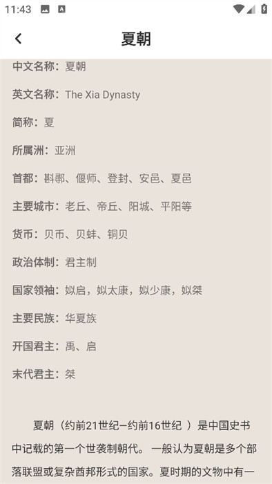 4、最后,你可以在详情页当中让自己了解的更具体,加深对朝代的了解。