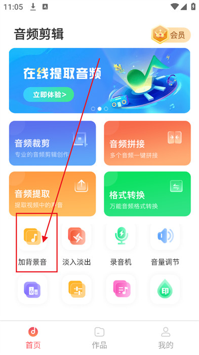 1、首先,你需要点击桌面的图标进入,并点击【加背景音】,会自动跳出弹窗;