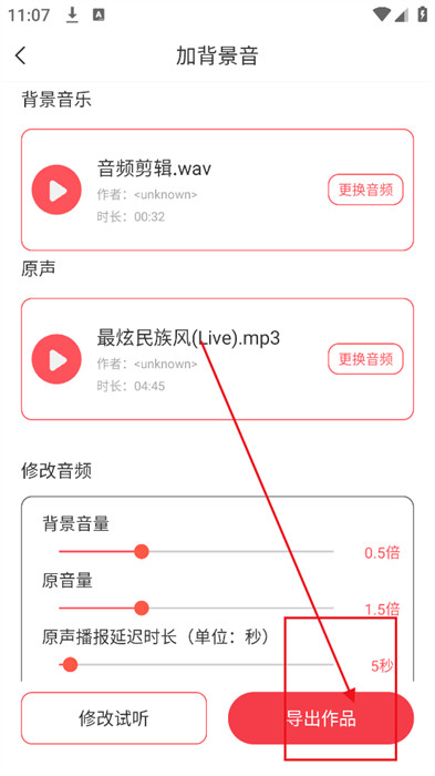 5、最后,将这里的音频进行调整,可以在线试听,也可以点击【导出】按钮,十分的便利。