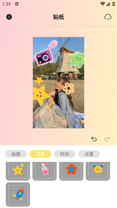 5、可以添加可爱的贴纸,将自己的照片打造出ins的感觉;