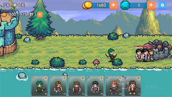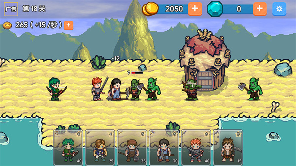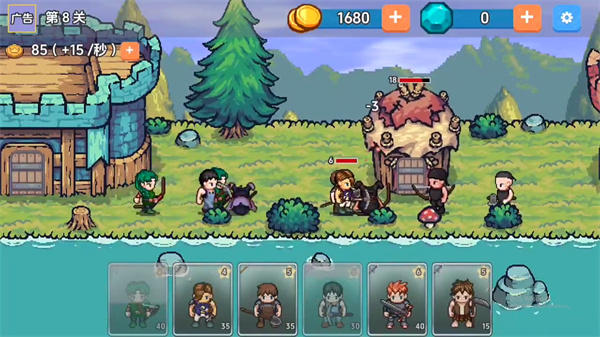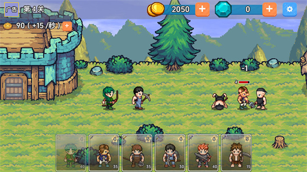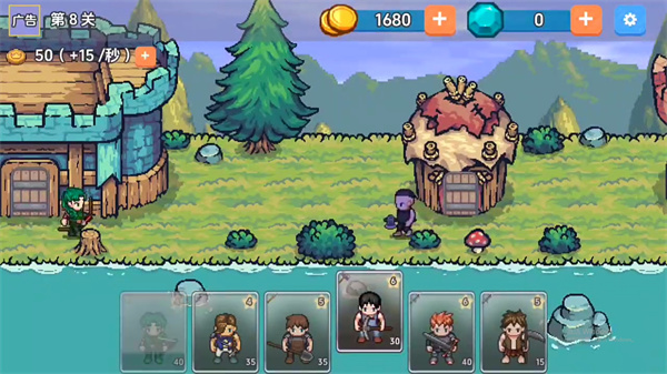 2、然后再前方的房子里面就会不断的生成对手出来,你需要在下方的卡牌里面选出自己的对抗英雄,守卫住自己的家园;