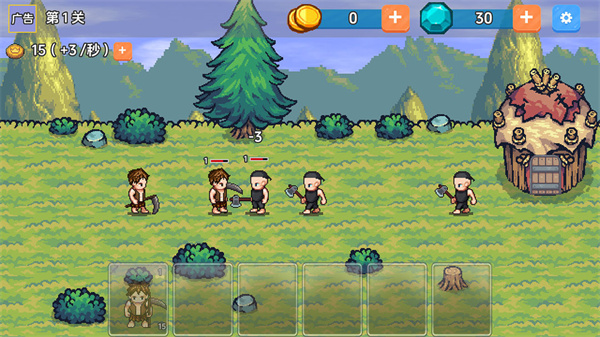 1、首先进入战场里面会遇到这样的一个像素森林画面,在这里带来一场场激烈的卡牌对决游戏;