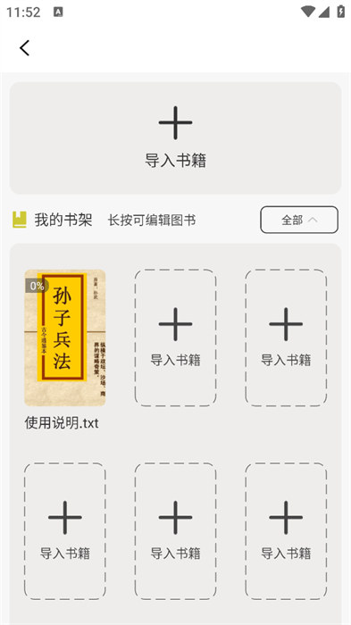 3、可以导入手机本地里面的书籍资源内容去进行阅读;