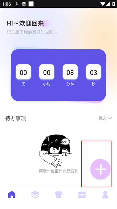 2、从首页中的右下角点击加号,这样能够自动跳转记录的页面,这里需要将标题和日期都清晰记录;