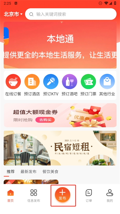 1、进入软件后将会看到提供的所有本地生活服务,根据个人的需求进行选择我们来看发布这栏;
