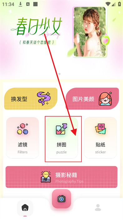 2、随后,点击首页【拼图】按钮,可以顺利跳转页面;