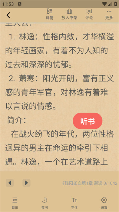 6、开始阅读之后可以选择听书或者是调整小说阅读的设置;