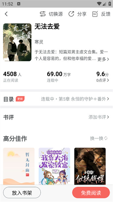 5、点击自己想要阅读的小说可以看到小说的简介内容;