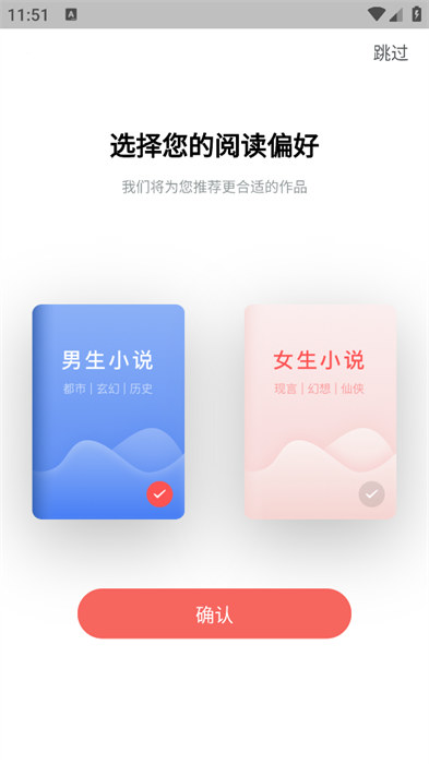 1、进入到软件之后先选择自己个人的阅读小说偏好;