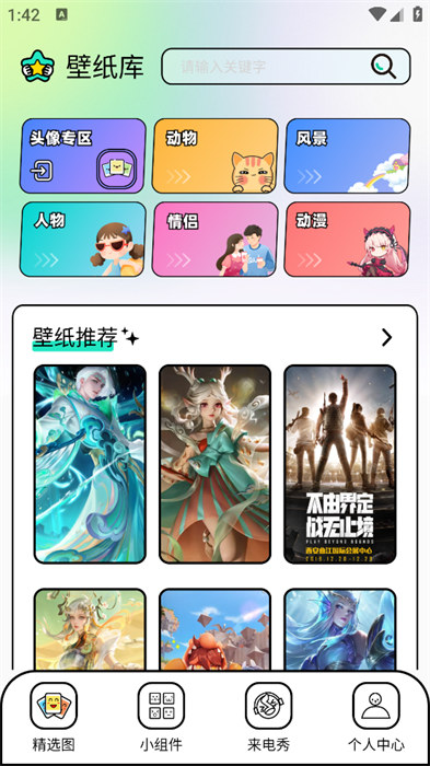 1、软件的首页为用户们推荐了各种各样的类型的壁纸资源;