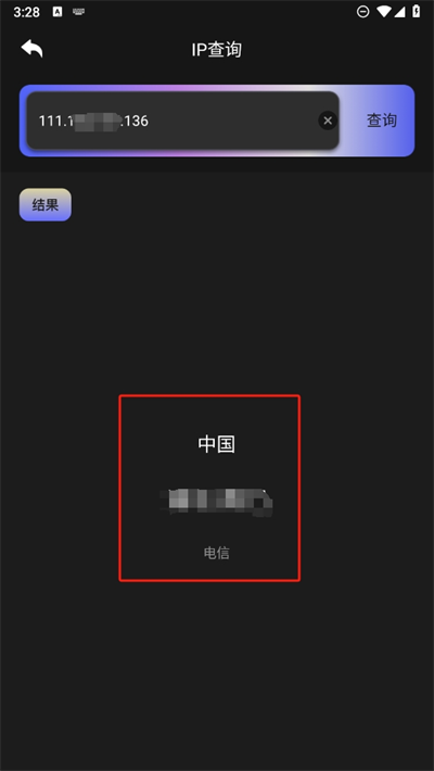 4、在这里可以进行内容的结果一键查询,可以看到网络的地址位置,还能看到运营商等等非常的方便。