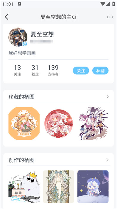 4、查看自己想要了解的用户主页可以进行关注和私信等互动;