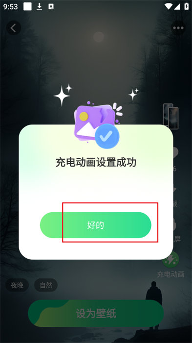 4、最后,直观的看到设置成果的弹窗,你可以立即充电查看一下画面。