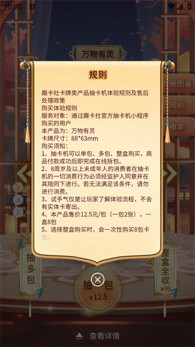 5、点击自己想要抽取的卡牌就能看到详细的抽卡规则。