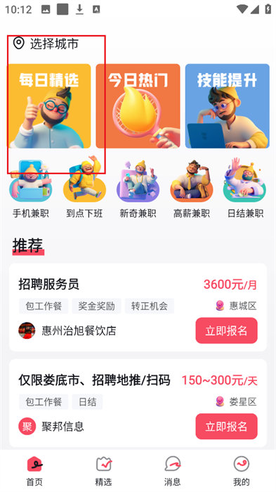 2、随后,可以点击首页上的【每日精选】,这里包含了海量的岗位;