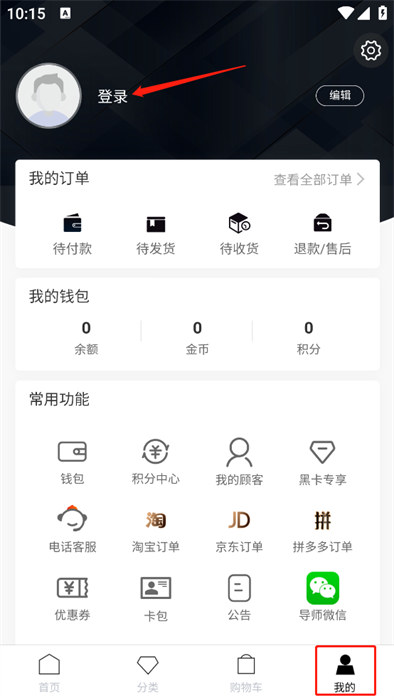 2、进入到软件之后点击我的,之后再点击上方的登录;