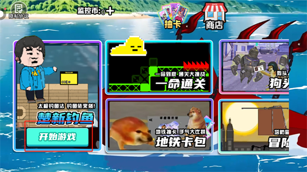 场景内的钓鱼佬是高效的表情包小人,可以通过不同的表情包来进行小人的选择,十分的搞笑;