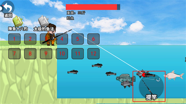 4、此时,玩家需要连续点击屏幕右下角的【提竿】按钮,以确保自己的小鱼能够被自己顺利的提上来;
