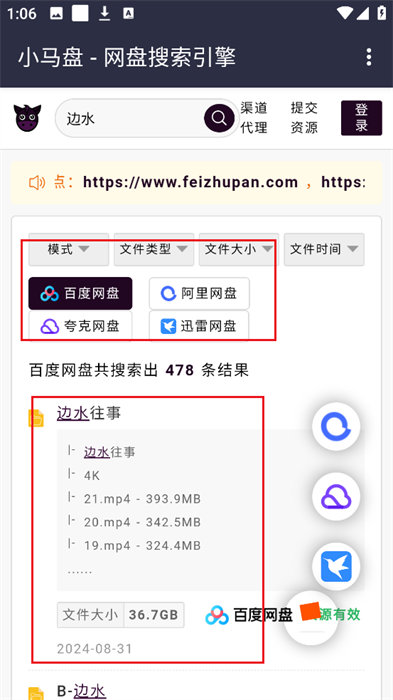 3、紧接着,你还可以切换搜索的网盘,这样能看到更多有用的视频资料;