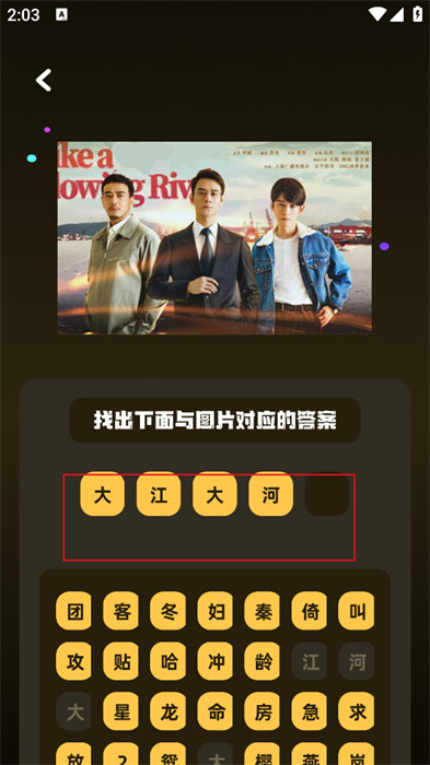 3、紧接着,还可以进行看图猜剧,将下方给出的一些汉字组合成影视的名称,如下图所示;