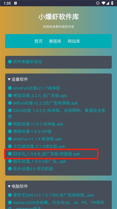 1、进入软件后将会看到有超多的资源下载,在这里我们可以选择追番类型的资源下载;