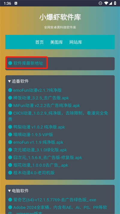 3、为了能够随时进入软件进行查看有哪些资源,可以在这里进入软件库查看最新的地址并进行保存;