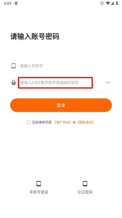 2、还可以直接进行账号密码进行登录,密码的设置上需要输入6-8位数字和字母组成的密码;