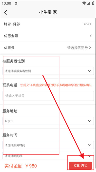 5、最后,填写好相关的上门信息,点击最下方【立即购买】,整个操作就完成啦。