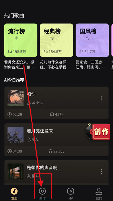 1、首先,大家可以先在本站将软件下载,并点击进入到平台当中,切换到【创作】页面;
