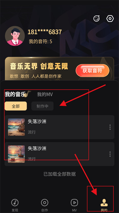 5、最后,只需要返回到【我的】页面,这样就能看到已经生成的音频。