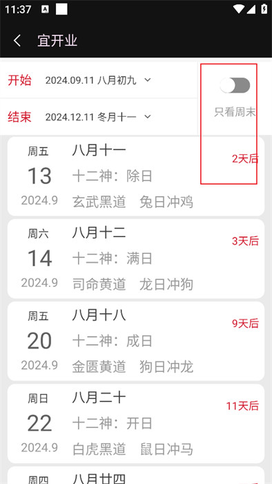 4、同时,还能挑选自己需要的日期,这样就能变得更加精准。