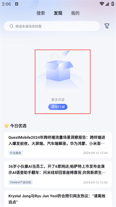 4、随后,你还可以切换到【发现】板块,订阅自己想要了解的新闻,点击【订阅】;