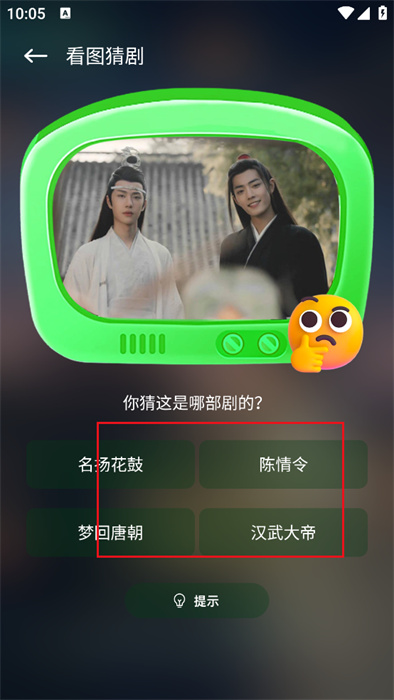 3、随后,我们可以切换到【猜剧】页面,这里十分的有趣,你可以线上看图猜剧,如下图;