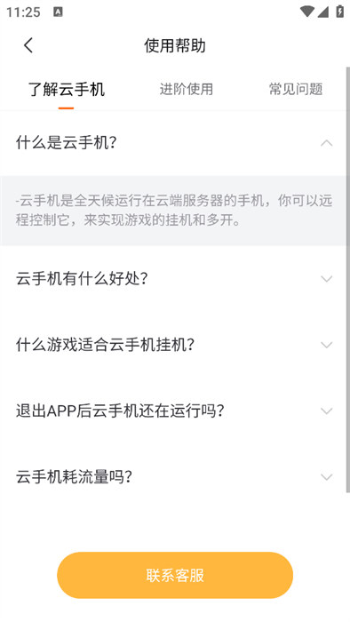3、各种各样的使用问题和云手机的具体内容都能够了解;