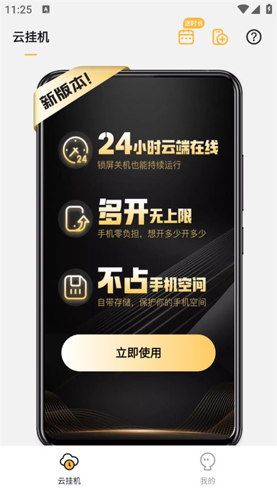 2、可以选择云挂机去进行游戏资源内容的使用;