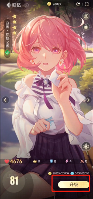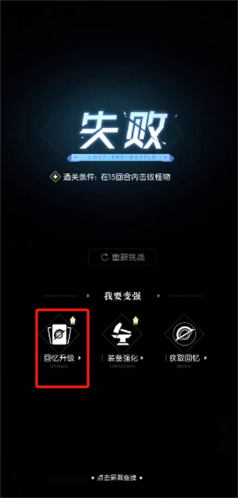 1、当玩家在卡牌战斗之中失败之后,可以通过回忆的升级来进行卡牌能力的提升和图片,点击屏幕左下方的【回忆升级】按钮即可;