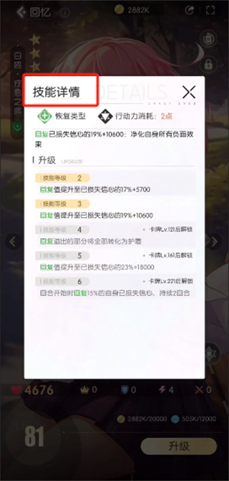 3、此时玩家将可以看见卡牌的技能详情,这可以帮助玩家们更好的对卡牌的相关属性进行升级;