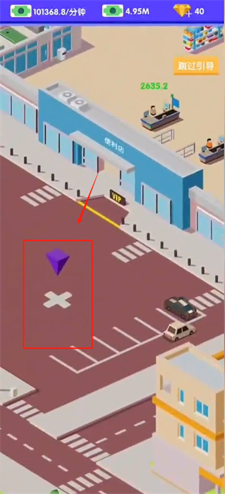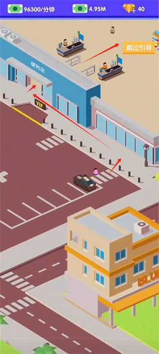 2、驾驶着自己的汽车去往超市的位置,并按照下图中箭头的指示方向来进行角色的移动;