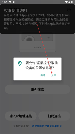 2、进入连接设备页面之后,弹出授权框,点击允许。