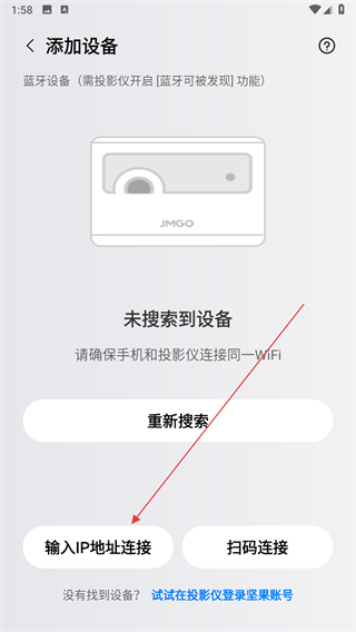 3、在设备搜索页面中,点击输入IP地址连接选项。
