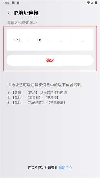 4、填写投影设备对应的IP地址,点击确定按钮即可。
