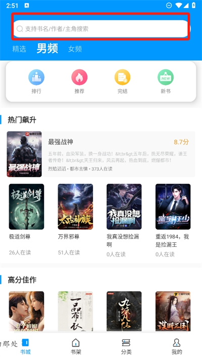 2、在搜索栏目中可以进行精准小说的搜索,在搜索页面中输入书名、作者或者主角等搜索;