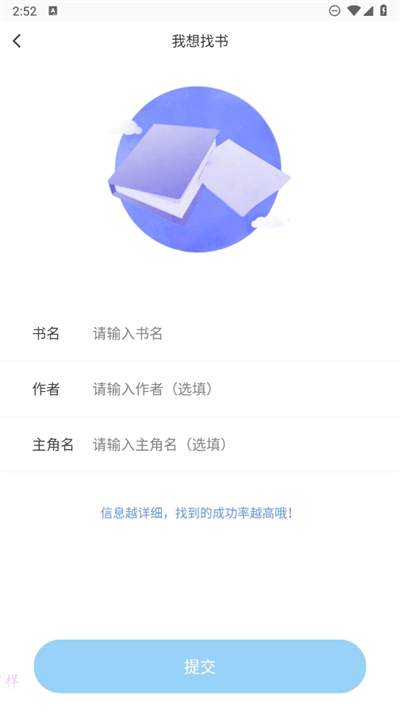 4、点击进入后可以输入书名、作者和主角名字进行找寻,其中作者和主角都可以选择填写找寻。