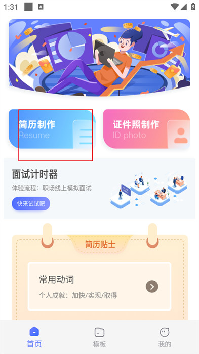1、首先,大家可以将软件点击进入到平台,并找到首页【简历制作】,如下图;
