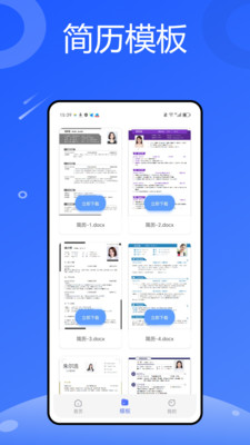 3、你可以看到这里有很多的模版,只需要通过左右滑动就能看到其他的简历模版;